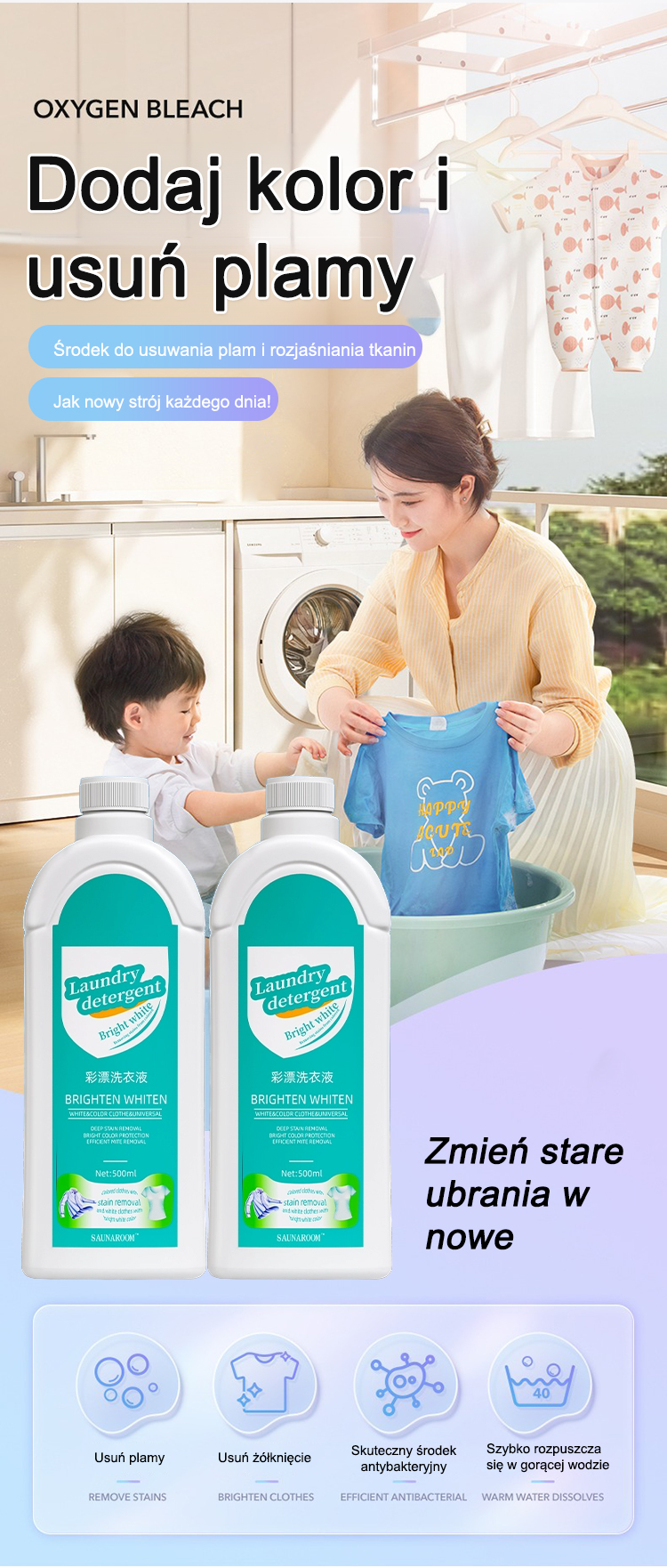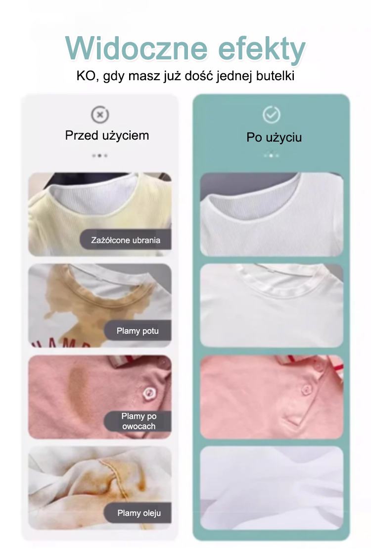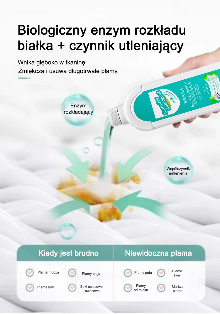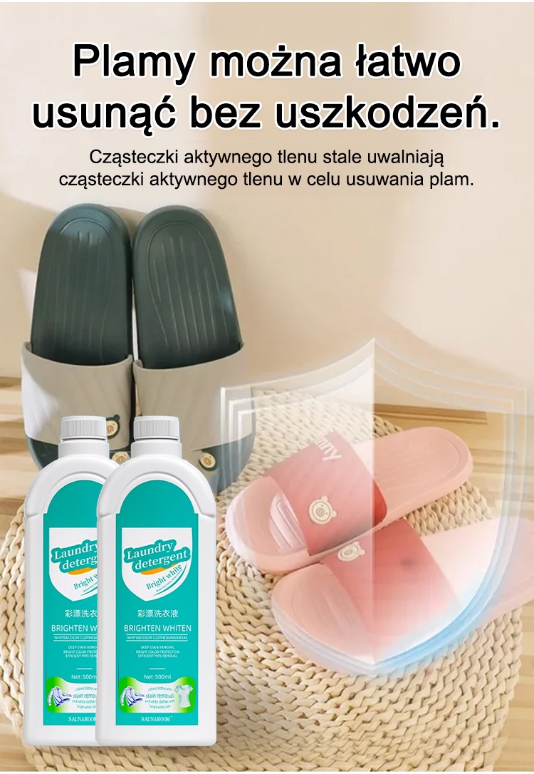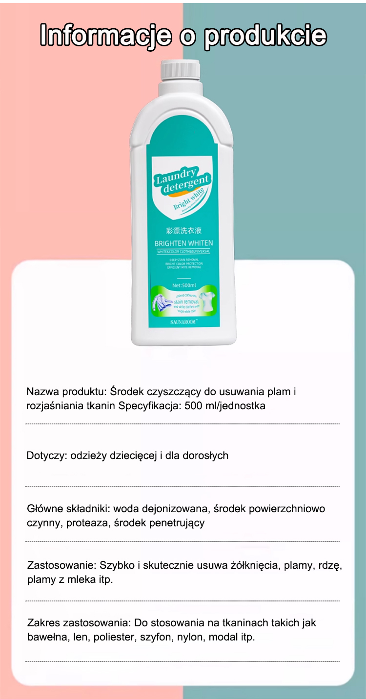 ``` 【La ropa vieja se vuelve nueva】Detergente que elimina manchas y aclara. ```