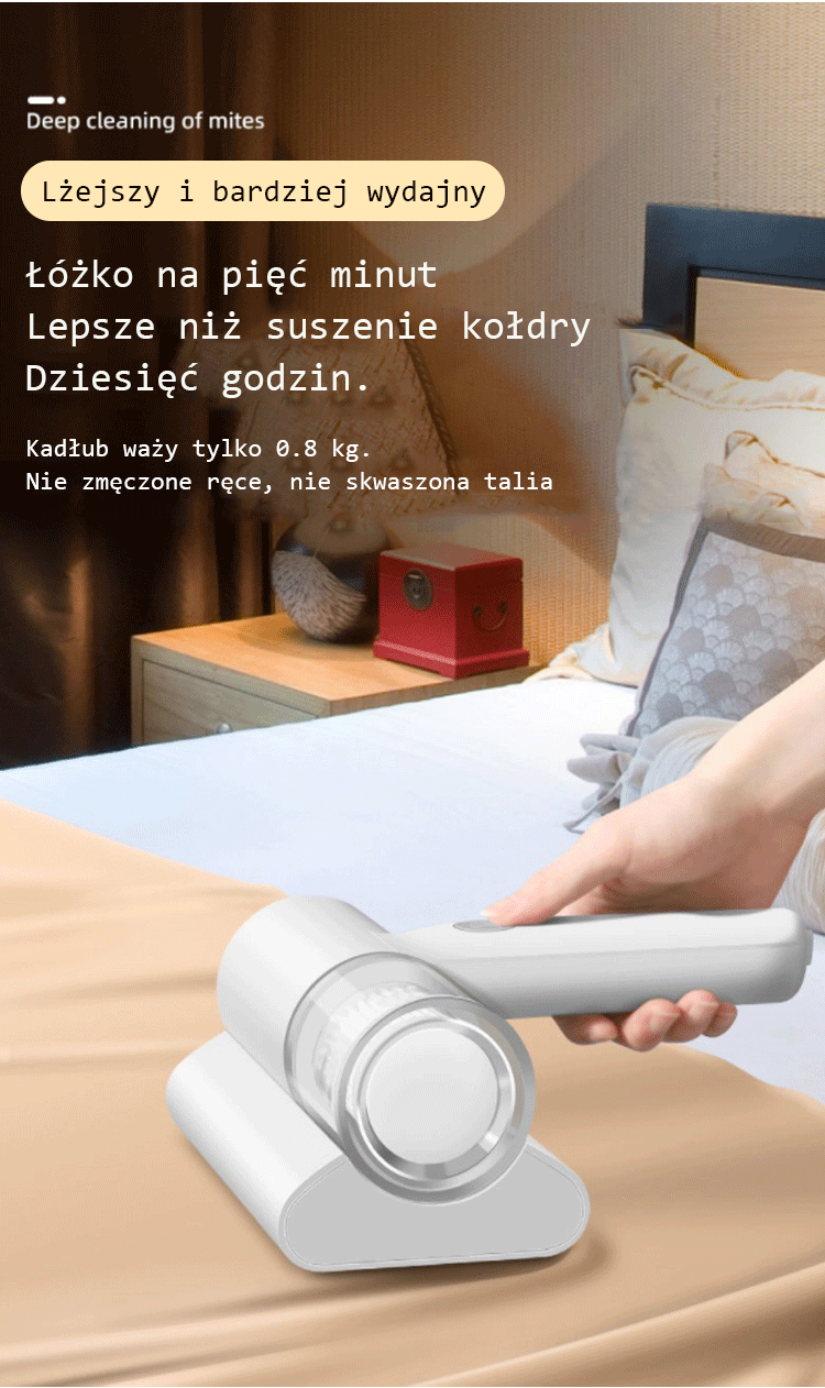 Promocja czasowa 50% zniżki. Darmowy 15-dniowy test. Eliminacja roztoczy w 3 sekundy! Jednym naciśnięciem czyścisz, dezynfekcja UV, 5-krotnie większa siła ssania